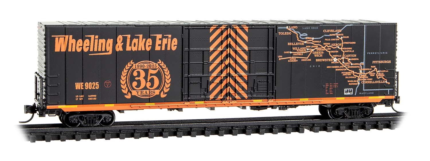 Wheeling & Lake Erie was founded in 1990, and is celebrating their 35th Anniversary in 2025. Most of the W&LE locomotives and rolling stock use stylized speed lettering and the color scheme of the D&RGW. It is headquartered in Brewster, Ohio, operating as a Class II regional railroad, interchanging with CSX and NS in the Northern Ohio and Western Pennsylvania region.